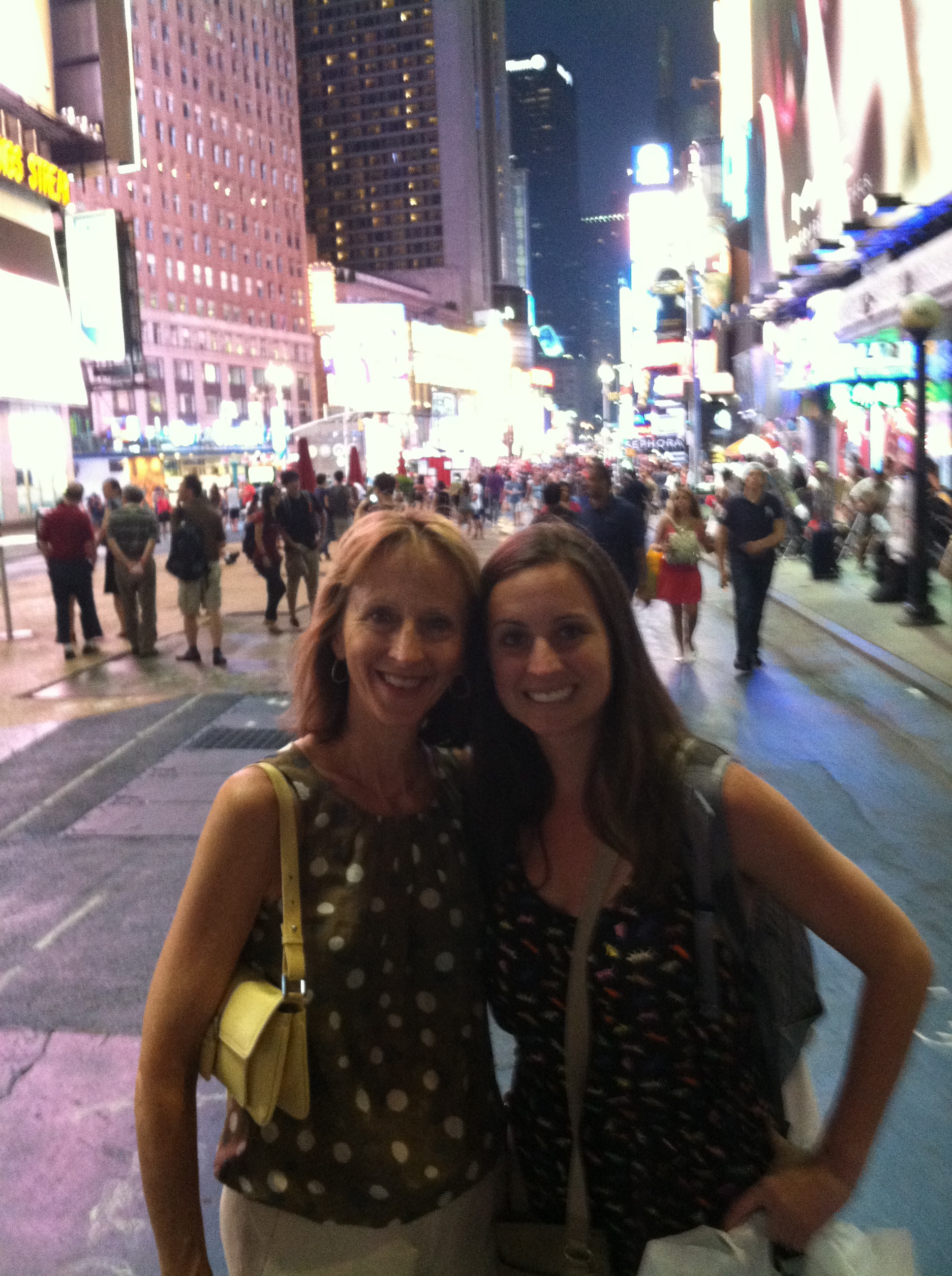 After dinner tonight (we ate at Becco. Totally forgot pictures but they have a wonderful menu and lots of under $25 bottles of wine) we ventured into Times Square. It was crazy and crowded as always, but still a fun place to see. My dad said he fell in love with NY in the middle of Times Square when he was there on choir tour in high school 🙂