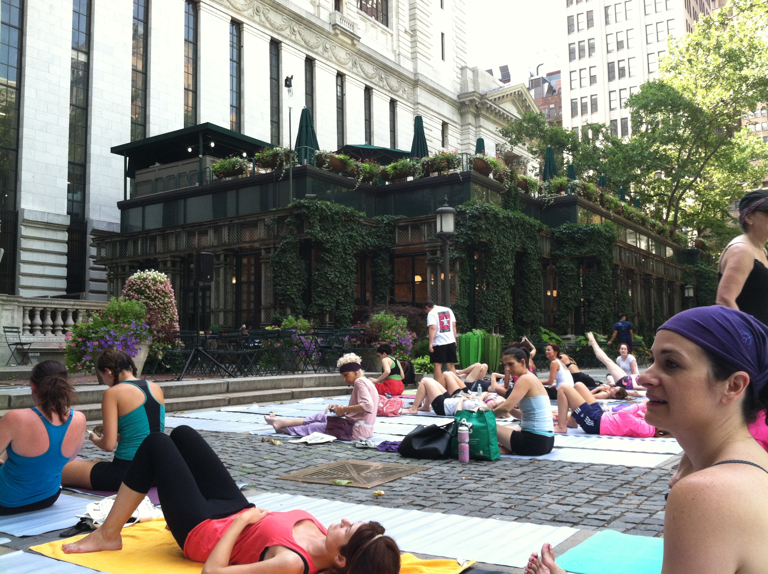 This picture doesn’t do the experience justice. Tuesday morning I did yoga in Bryant Park with about 200 others. This is put on by lululemon and of course the wonderful people at Bryant Park who allow us to use the Pavilion each Tuesday (10am) and lawn each Thursday (6pm). The classes are complimentary (FREE) and taught by local yoga instructors. Lululemon provides mats so you don’t even need to bring one. Check it out! It was incredible. Thankfully I got a spot in the shade so didn’t die from the heat.