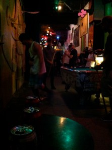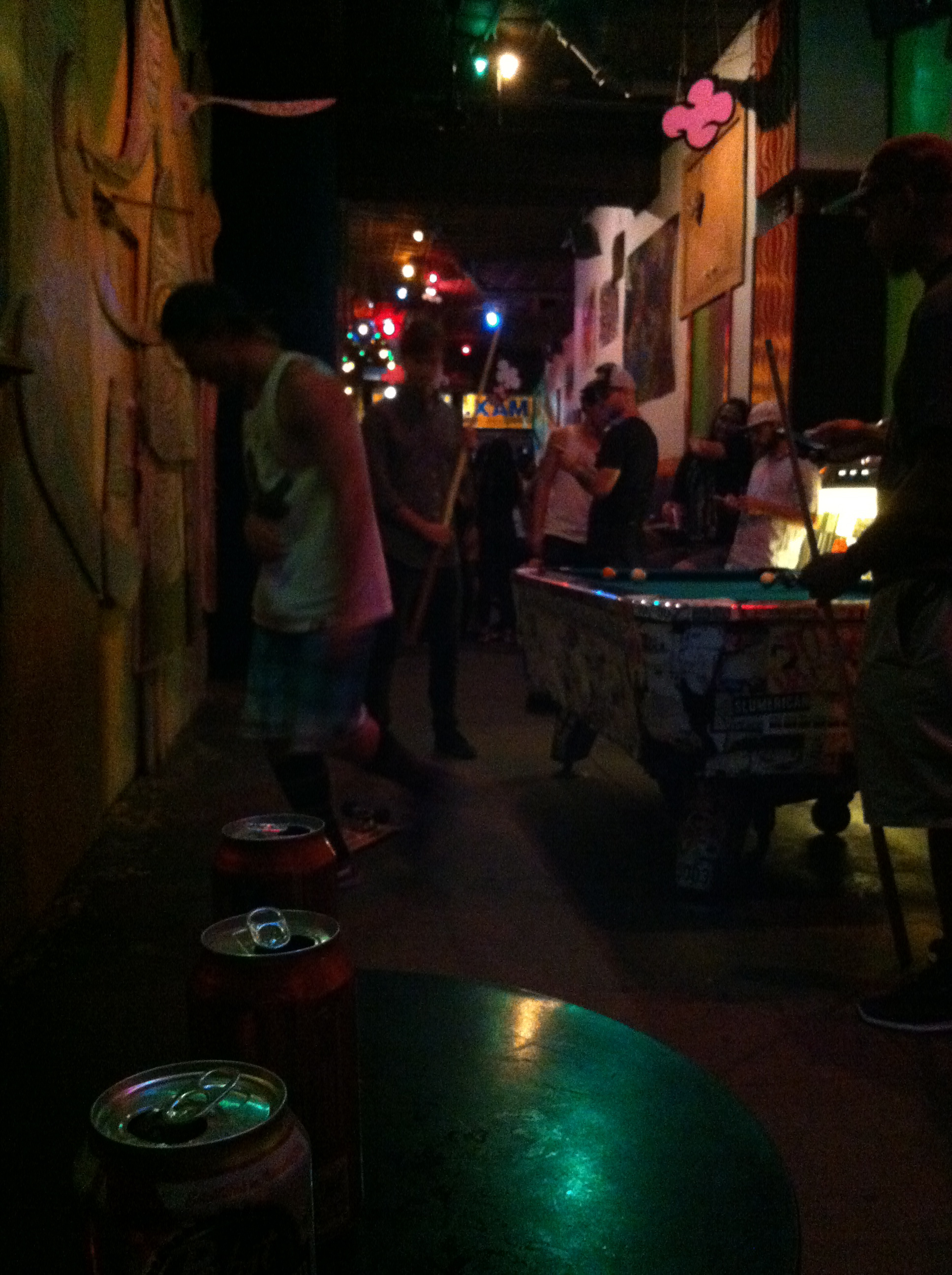 After work Tuesday I met a friend for dinner and then we had drinks ($3 PBR mmm) at Max Fish. The picture is dark but it’s a very cool bar. It’s well known in the art scene and always has different local artwork hanging on the wall. Skateboarders hang out there too. In the picture above a guy is trying to do tricks on his board in the bar. True entertainment.