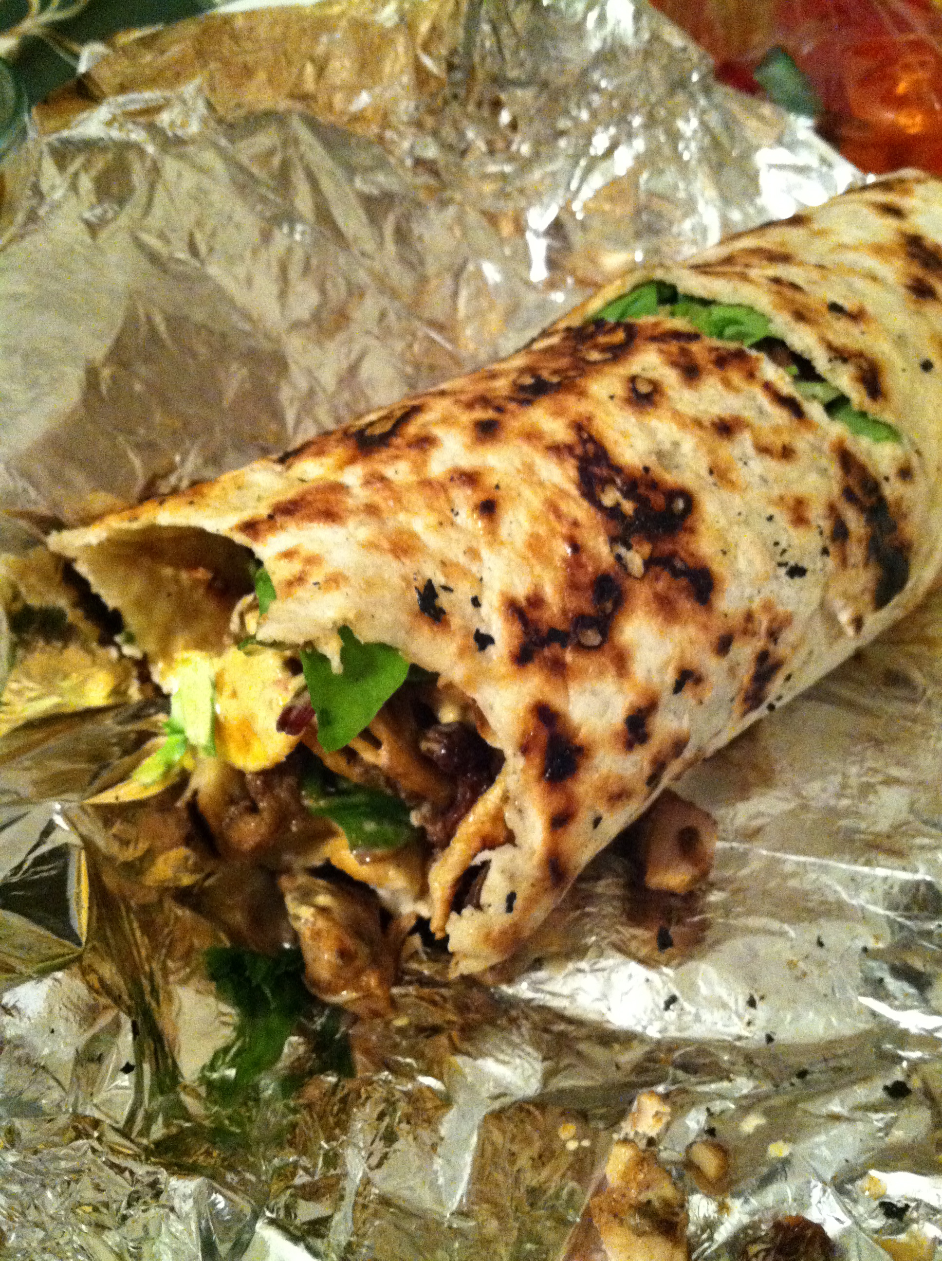 This is the Brother’s Grimm: chicken wrapped in a chestnut & chilly dough (they have so many doughs) with shitake mushrooms, raisins, plantain chips, and a chipotle aioli sauce. So so yummy. I will try every wrap there.