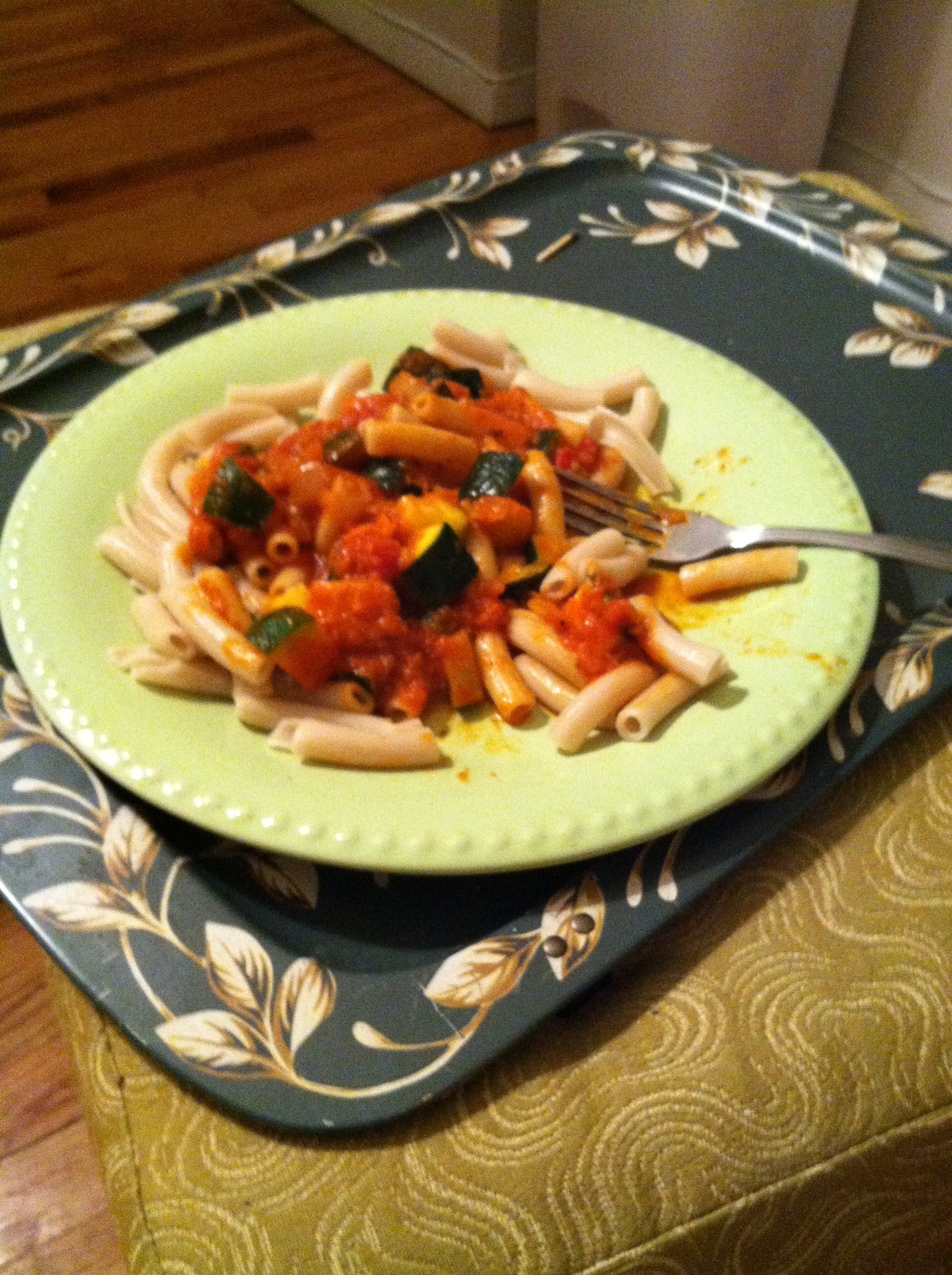 Emily came over and she helped make dinner. Pasta with vodka sauce, zucchini, onion, and tomatoes. It was actually very delicious and nice eating a home cooked meal for the first time since I moved here!