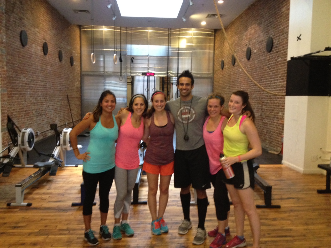 Oh man, the pullups were the least of my worries. I actually really like pushups too, but 30? It was exhausting. The situps were easy the first couple of rounds, and then not so much. I really loved when we started the third round and I said, “Alright guys last one!” and was corrected that we had five rounds, not three. This thing kicked my butt. No other way to put it. It also felt SO GOOD. I have really missed my Fight Gone Mad and strength training, and I think I found it. I told one of my friends that I commit to going to Crossfit at least once a week until my marathon, and probably after. The strength training improves my running tons. Here are the ladies and me post workout with Dell.Image