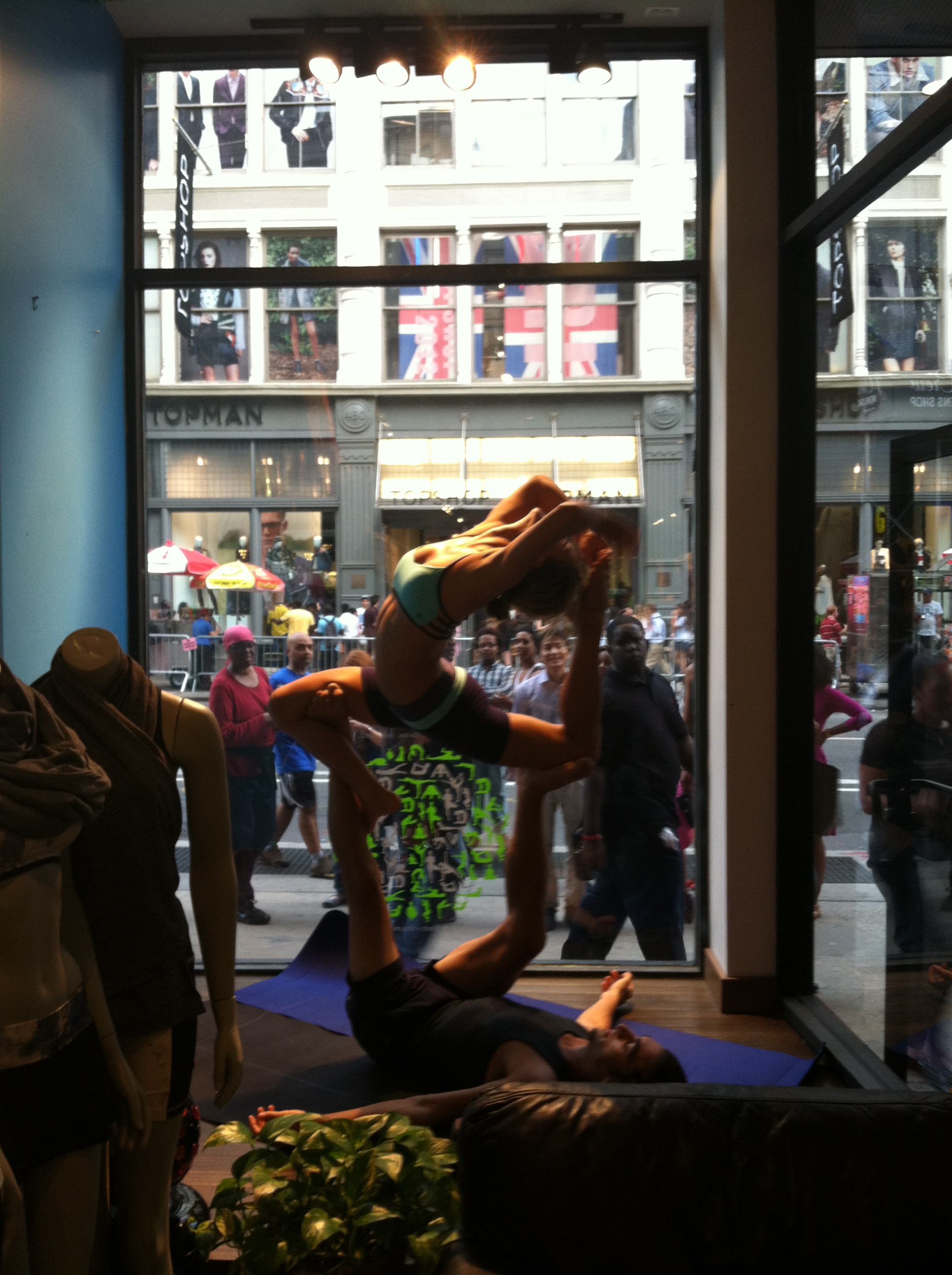 It’s Fashion Week in NYC. I really had no idea what this meant, and then I experienced Fashion’s Night Out. We had a DJ, disco balls, and acro yoga at the store. It attracted quite a fun crowd! We had a dance part in the store all night and it was a blast. The acro yoga is so impressive! I went out in soho when I got off work and WOAH so many people dressed to impress in everything you could ever imagine. This is New York!Image