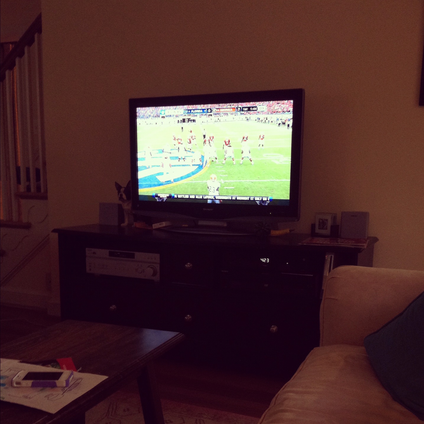 Watching GA/FL!!! What else would you expect? It was very challenging for me to keep calm and not yell at the TV, and I had to be kind to these people for welcoming me into their home 🙂 Kelly’s sisters prepared a delicious salmon dinner for us. We had rice and some other veggies, and this was plenty of carbloading for me. There’s really no reason to overload on carbs. They paused the game for me while we ate (so sweet!) and then watched the end with me. I had chills and was near tears with excitement that we ACTUALLY WON! My mom said it best, “I’m so glad we won. I was worried if we lost you’d be so angry you wouldn’t sleep well tonight. Now during your race when you are struggling you can think how UGA persevered through the game and won!” I’m sure this sounds silly to many people, but to me it was right on point. We set our alarms for 4:45am and headed to bed early!