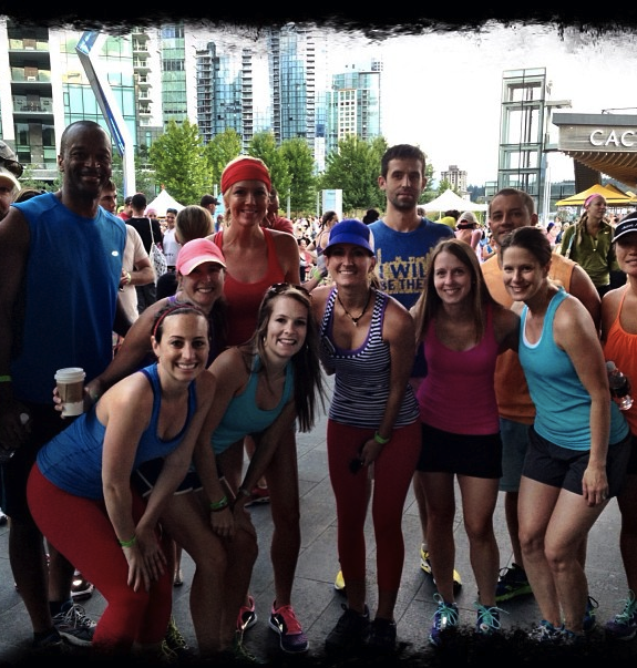 I’ve failed to mention the wonderful half marathon I did only two weeks ago. Seawheeze, the lululemon half marathon in Vancouver. Van is a gorgeous city and the route was fantastic. We raced through the city and then along the water, the Seawall as they call it there. It was my first trip to Canada and I’ll surely return for this race! I was lucky enough to run with three of my good friends from Charlotte. We dressed in Braves/America colors!